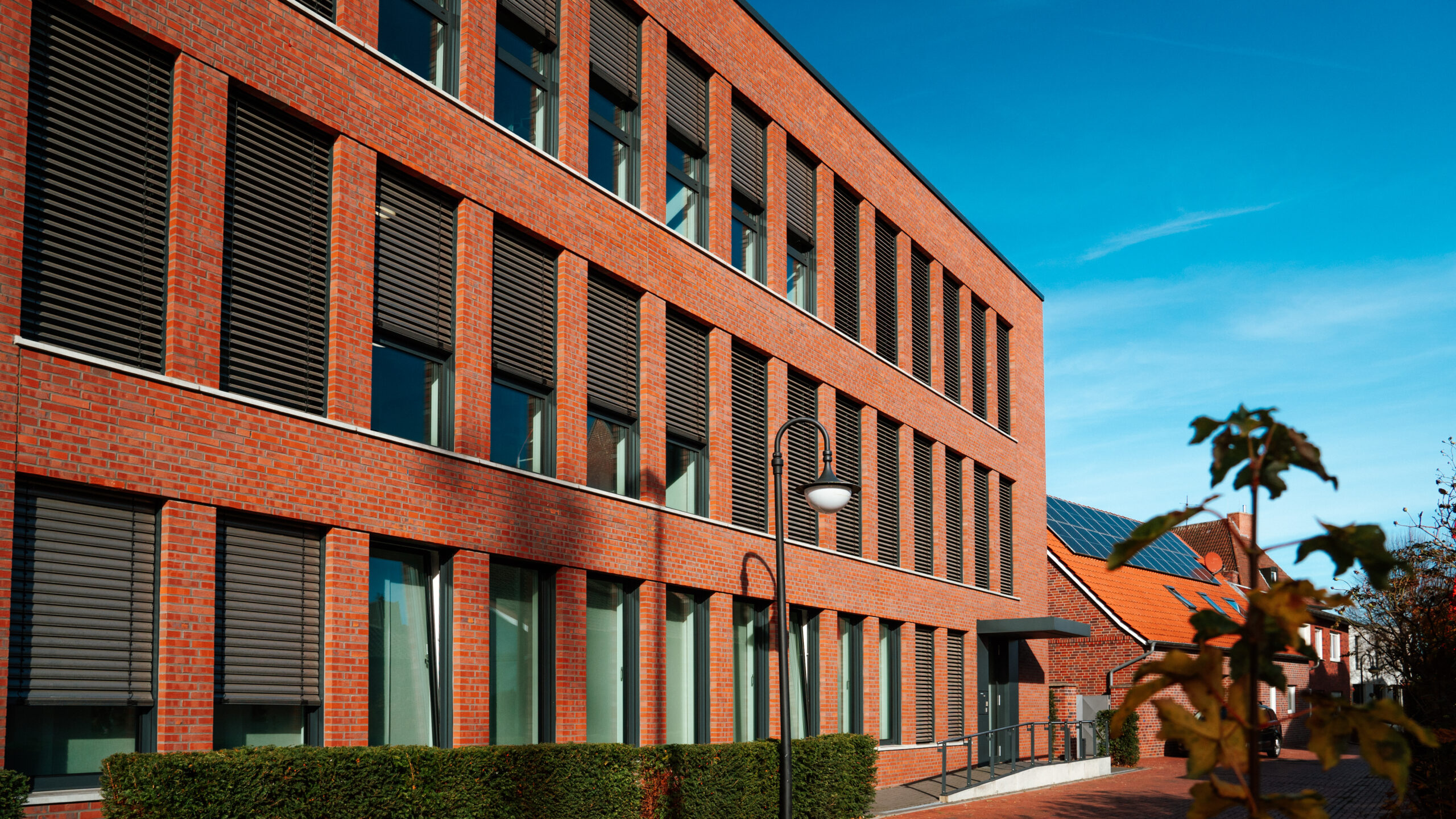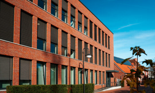 In unmittelbarer Nachbarschaft zur Sparkasse entstand in Emsdetten ein neuer Bürokomplex mit rund 50 modernen Büroeinheiten. Der Neubau ergänzt den bestehenden Standort funktional und stärkt die innerstädtische Dienstleistungs- und Wirtschaftsstruktur.