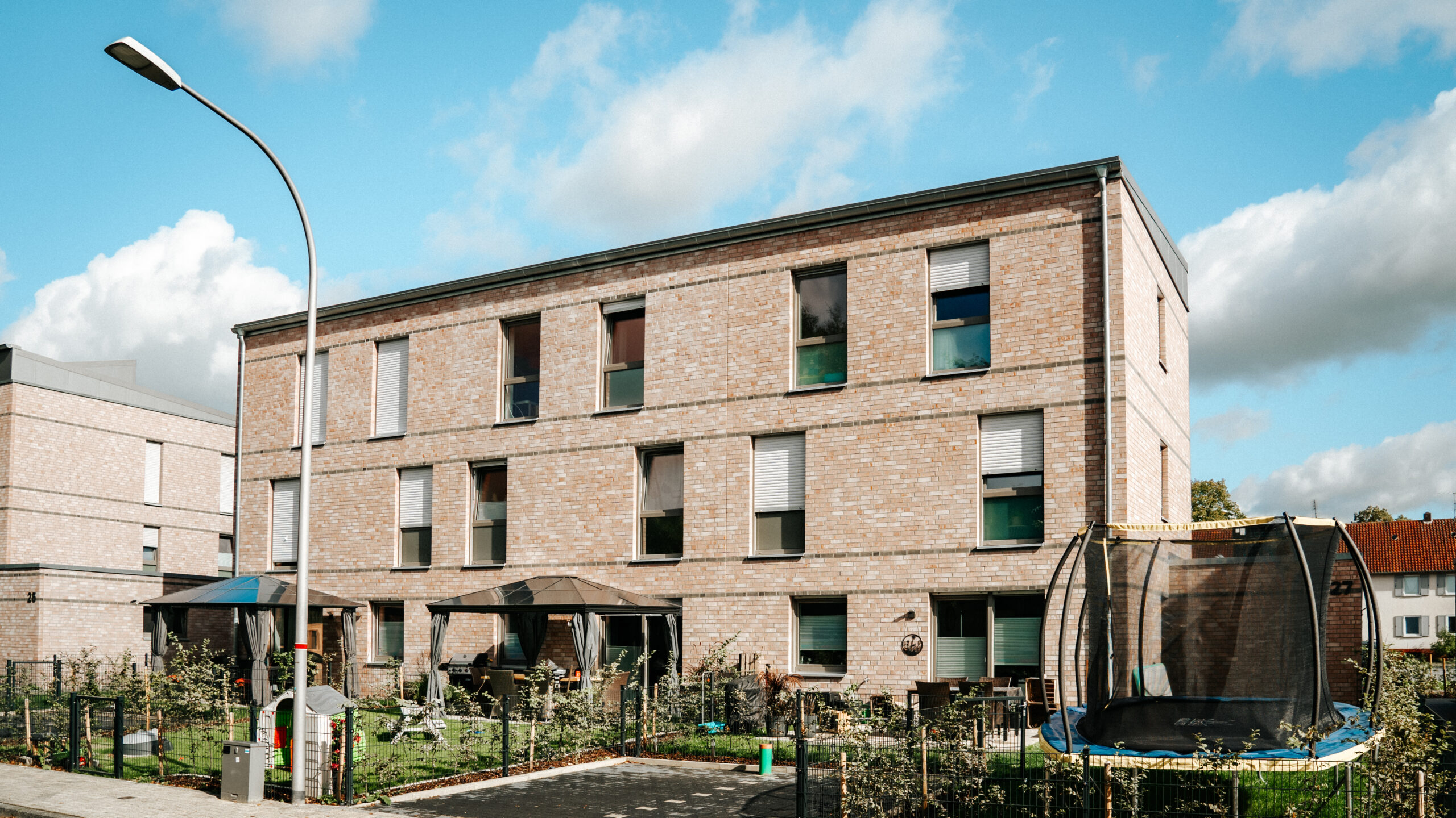 Im Herzen von Münster entstand in direkter Nachbarschaft zum Schlossplatz eine neue Kindertagesstätte für die Universität Münster. Das zweigeschossige Gebäude ergänzt die historisch geprägte Bebauung im Bereich der Torhäuser städtebaulich maßstabsgerecht und bietet moderne Betreuungsplätze in zentraler Lage.